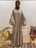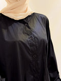 عباية عملية وأنيقة مصنوعة من قماش البوبلين المريح. تتميز بأكمام باف واسعة لمظهر راقٍ، مع أزرار من الصدر لسهولة الارتداء. تصميم بسيط ومثالي للاستخدام اليومي.